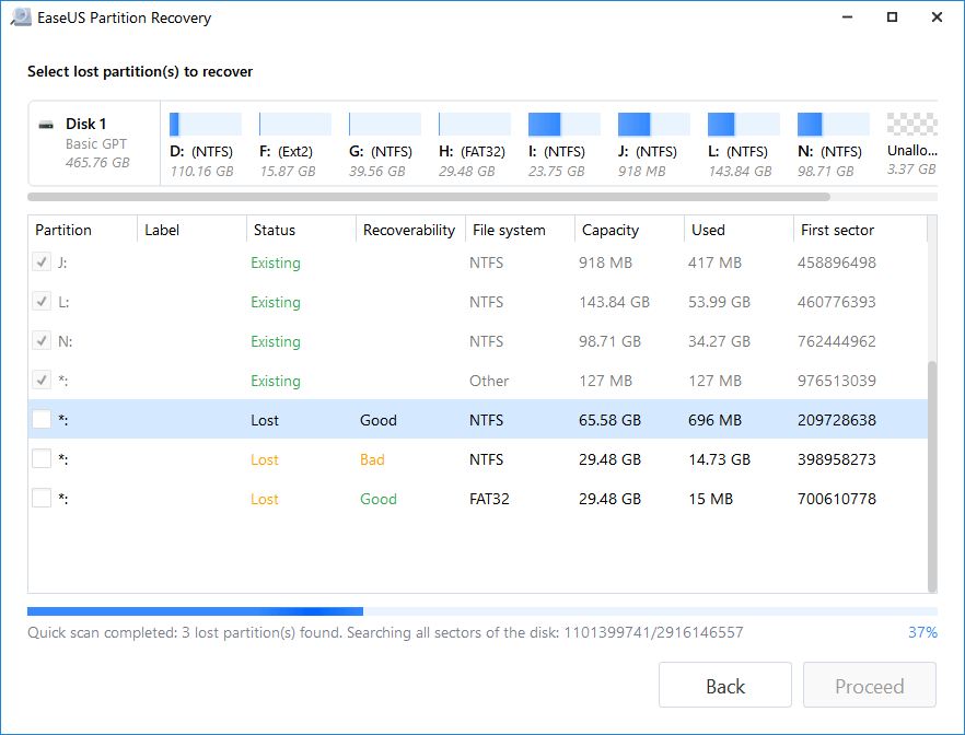 Пусть программа просканирует выбранный диск и найдет потерянные разделы.
