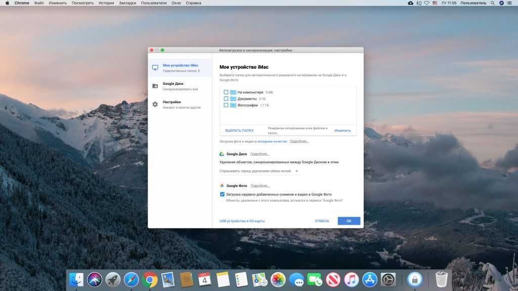 На мобильных устройствах фотографии могут автоматически загружаться в безразмерное хранилище через приложение «Google Фото». Но точно такая же возможность есть и на компьютерах с Windows и macOS. Для этого зайдите в настройки клиента «Автозагрузка и синхронизация» и включите опцию «Загрузка недавно добавленных снимков и видео в „Google Фото“».