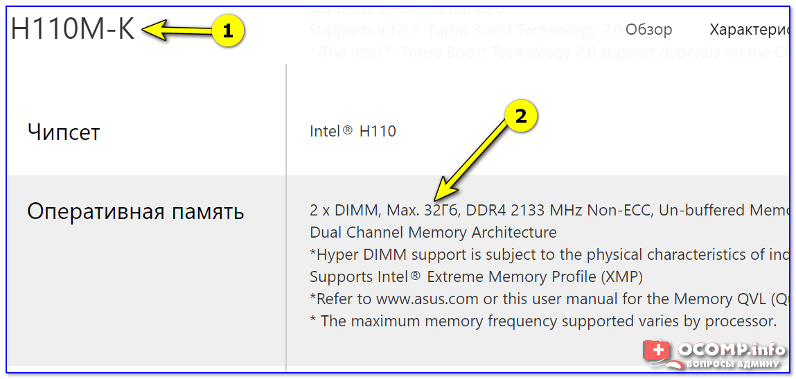 После, достаточно вбить в поисковую систему Google (Yandex) запрос вида «Asus H110M-K тех. характеристики» (у вас будет свой производитель и модель мат. платы).