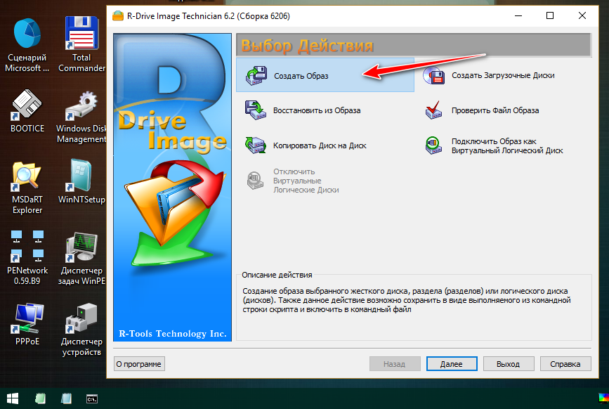 На домашней страничке R-Drive Image запускаем создание образа бэкапа.