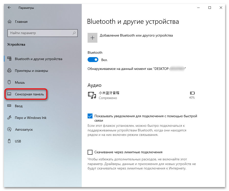 Способ №3: для Windows 10 – используем параметры сенсорных устройств