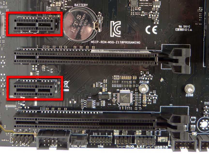 На современных материнских платах для установки плат расширения используются разъемы PCI-E x1 или лишние разъемы PCI-E x16. Желательно, чтобы на материнской плате было хотя бы 1-2 таких разъема, не перекрывающихся видеокартой.