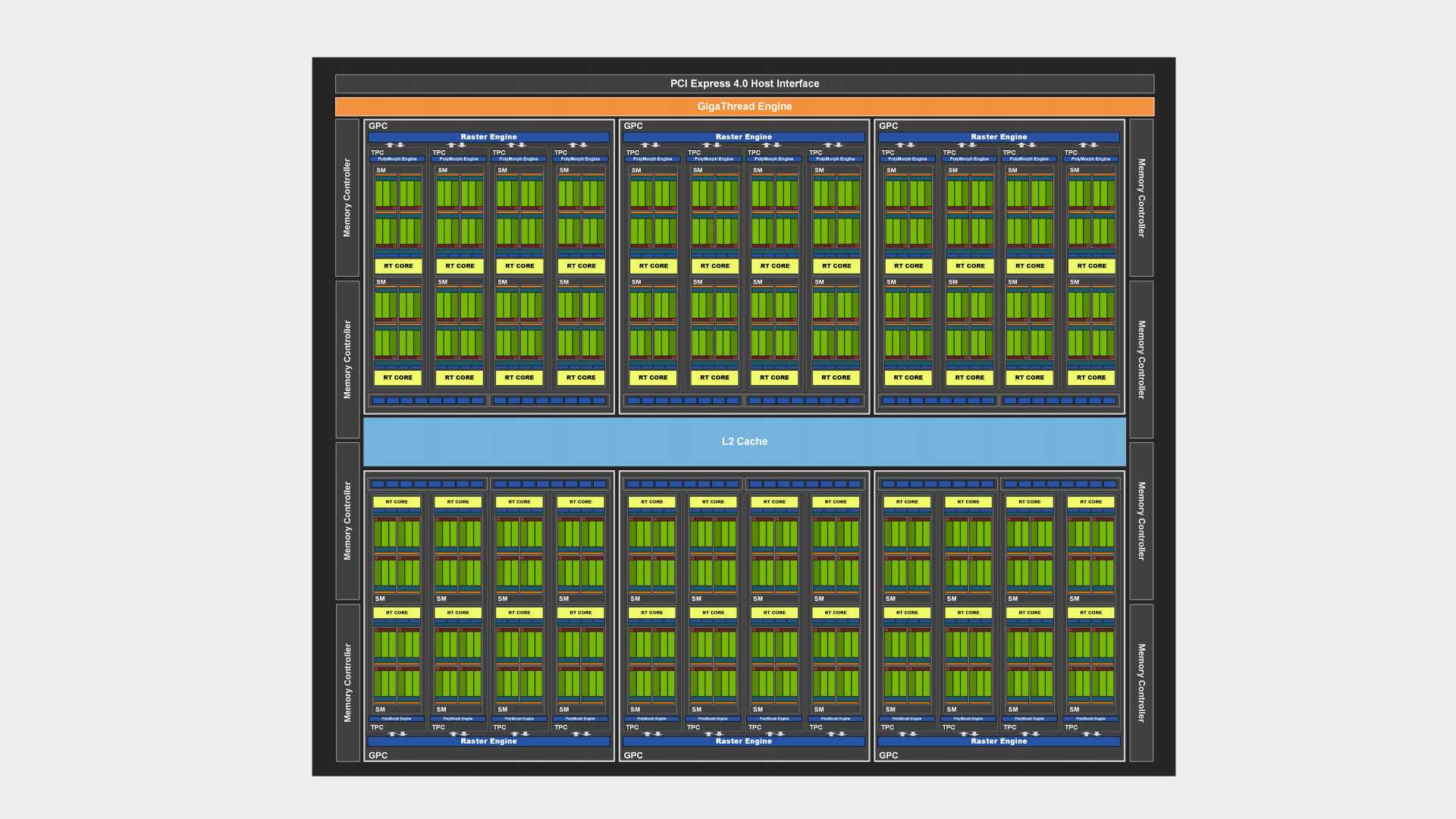 Тем не менее, тот факт, что он может приблизиться с почти на миллиард меньше транзисторов, и в 8-нм графическом процессоре, который занимает половину размера TU102, показывает, насколько впечатляюще эффективной архитектурой Ampere может быть вдали от чудовищного кремния RTX 3080. и откровенно огромная Nvidia RTX 3090.