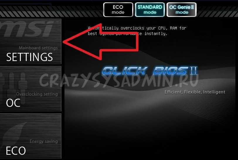 В главном меню BIOS выбираем пункт «Mainboard settings» («Settings»).