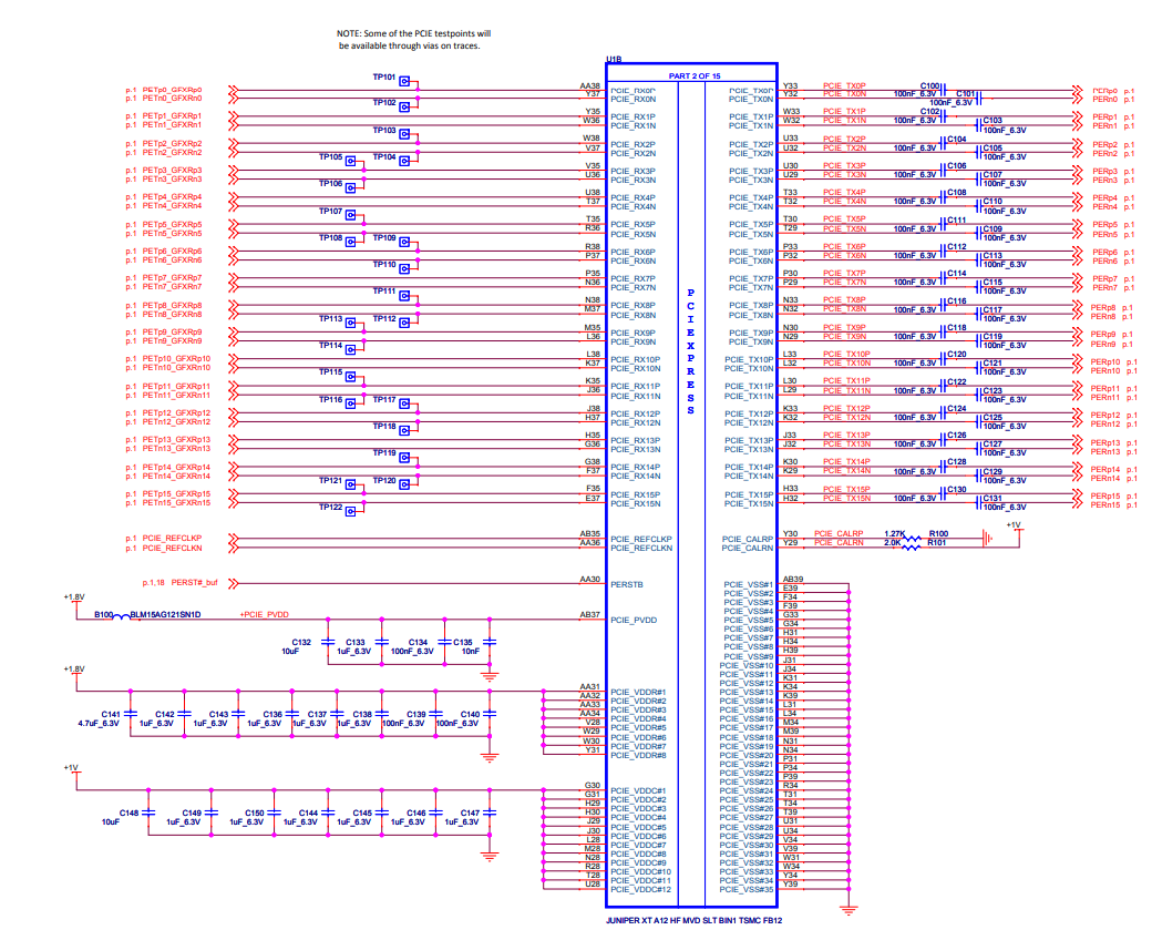 Фильтрующие элементы по линиям питания +3.3, +12 вольт, размешаются непосредственно возле контактов PCI-E на плате видеокарты: