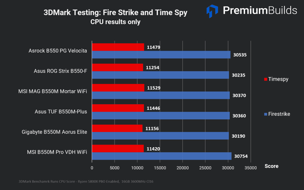 We also ran Time Spy and Firestrike CPU tests. These show a little more variance in results but looking at CPU metrics we couldn’t identify any substantial change in CPU performance; This is likely down to variables such as cooler fitment or even ambient temperatures of the test and we don’t consider it anything of concern.