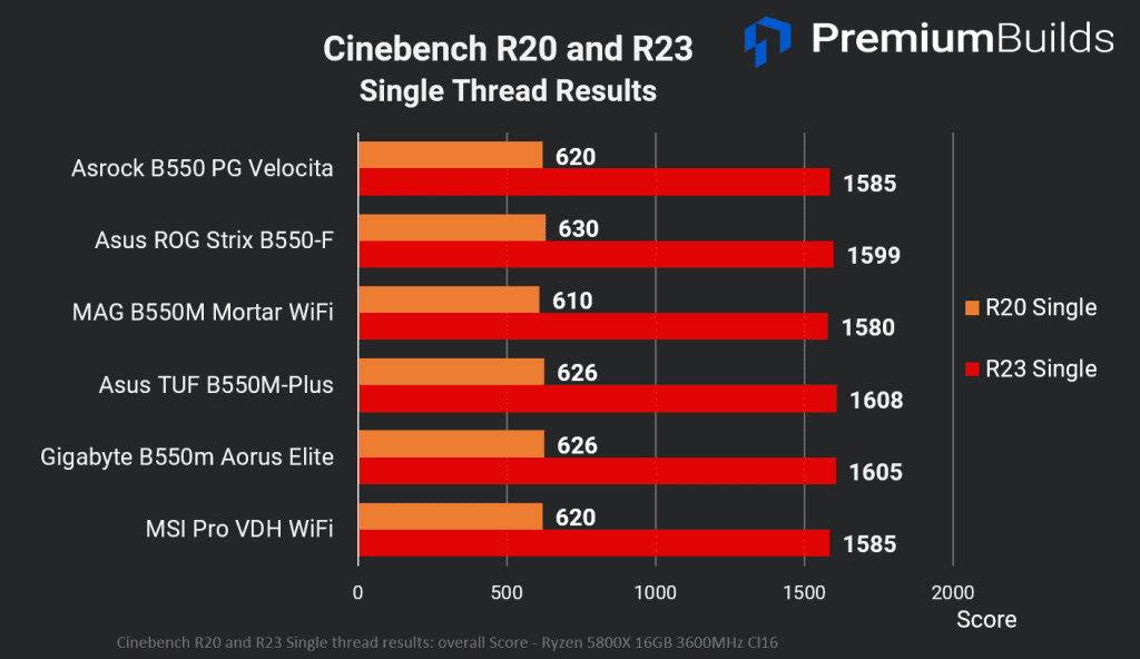 In this test we ran both single and multi-core workloads, to ensure that the Motherboard allowed the CPU to boost correctly and also didn’t limit the CPU with power draw. You can see that the boards behaved almost identically.