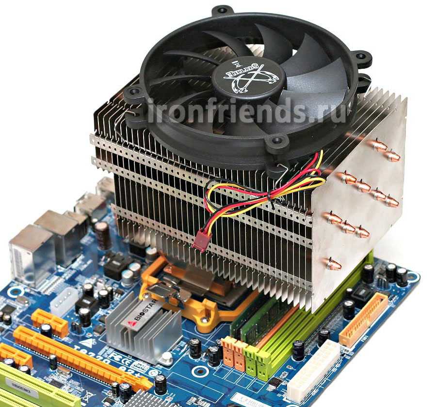 Чем меньше радиатор и размер вентилятора, тем его обороты будут выше. Это необходимо, чтобы компенсировать низкую площадь рассеивания и слабый воздушный поток.