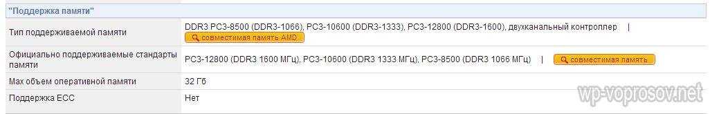 Узнать тип поддерживаемой оперативной памяти можно также из характеристик процессора (CPU) или модели материнской платы на официальном сайте производителя — узнать эти модели также легко в программе Speccy или ее аналогах.