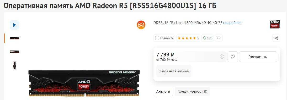 Память AMD Radeon R5: 4800 МГц, норм. Тайминги 40-40-40. Я бы взяла 2 планки.