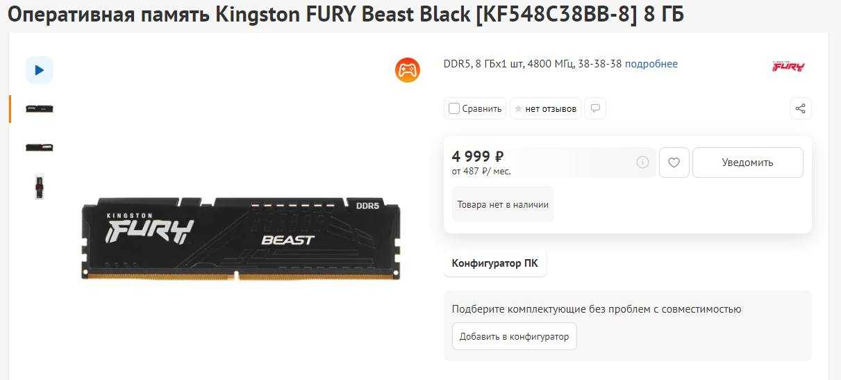 Ну и третья часть: полет фантазии. Здесь особо нечего комментировать, я подобрала комплектующие похожие по характеристикам, к DDR5 из ассортимента ComputerUniverse.