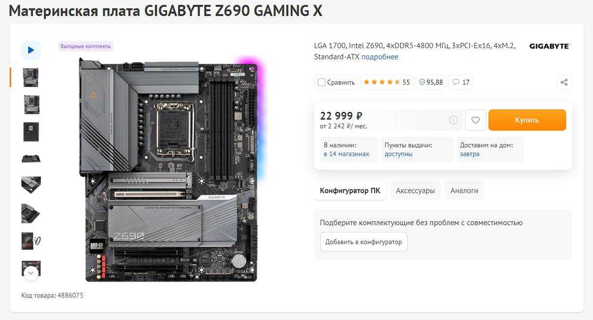 От этой материнской платы, опять таки, мне нужен актуальный чипсет и поддержка DDR5 на частоте 4800 МГц.
