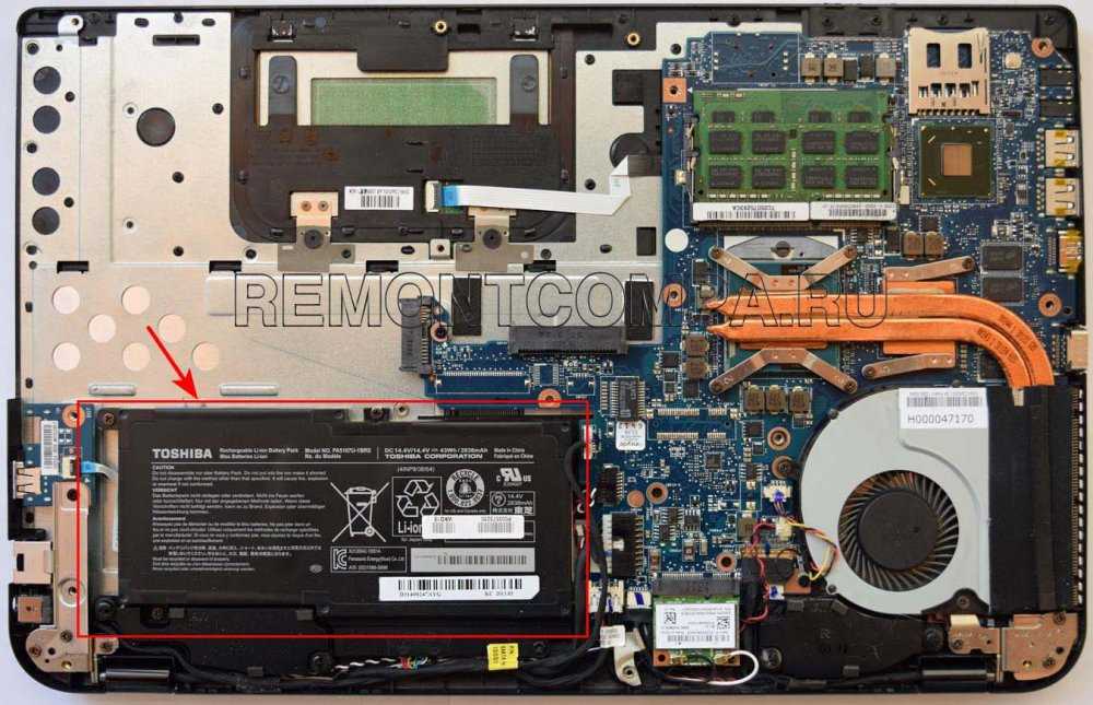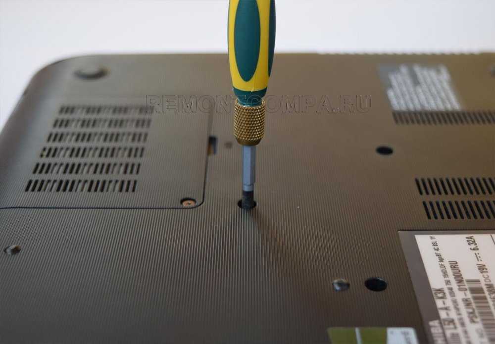 - вытащите аккумулятор (он находится обычно снизу под клавиатурой, его держат скобы, которые нужно разжать).
