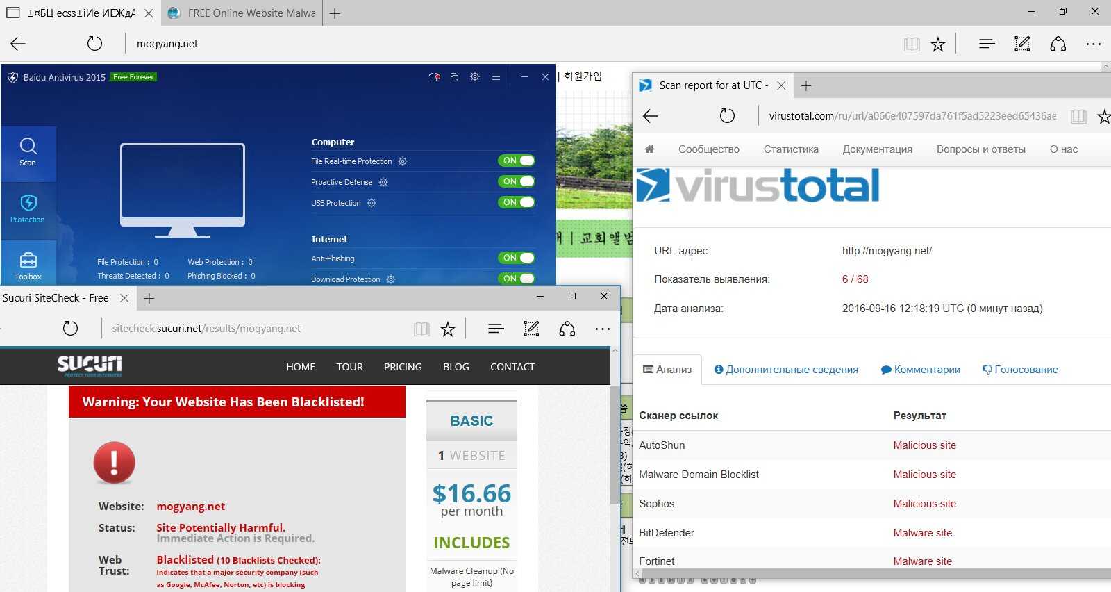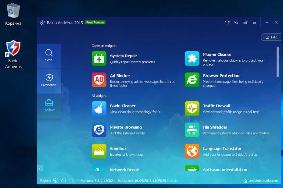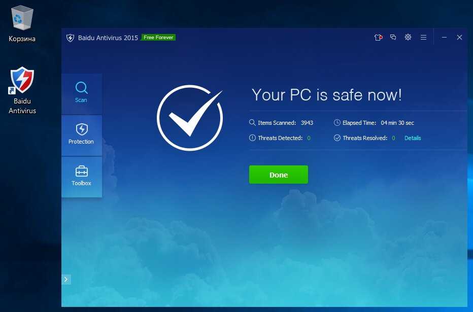 Нам бы хотелось написать подробнее, но снова оказалось не о чем. Антивирус Baidu оправдал свое название. Как и предыдущий участник тестов, он не распознал ни одной угрозы — даже несмотря на наличие отдельных инструментов для защиты от фишинга и вредоносных загрузок. Ни один из компонентов антивируса не сработал ни разу. Baidu Antivirus не определял зловредов на сайтах ни по сигнатурному, ни по поведенческому, ни по репутационному анализу — вообще никак.