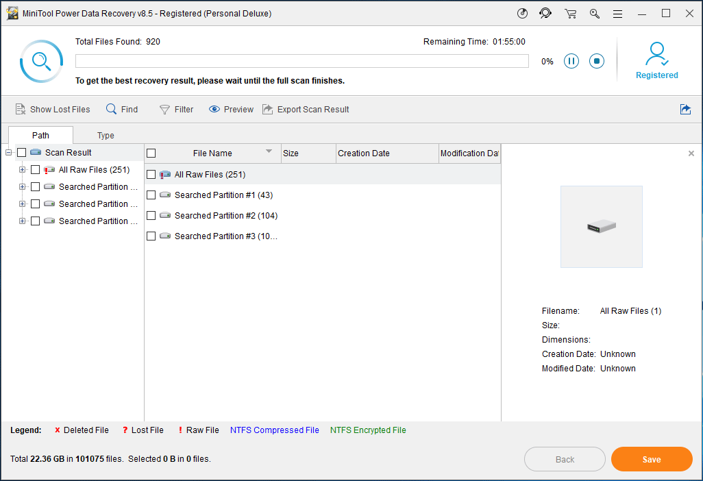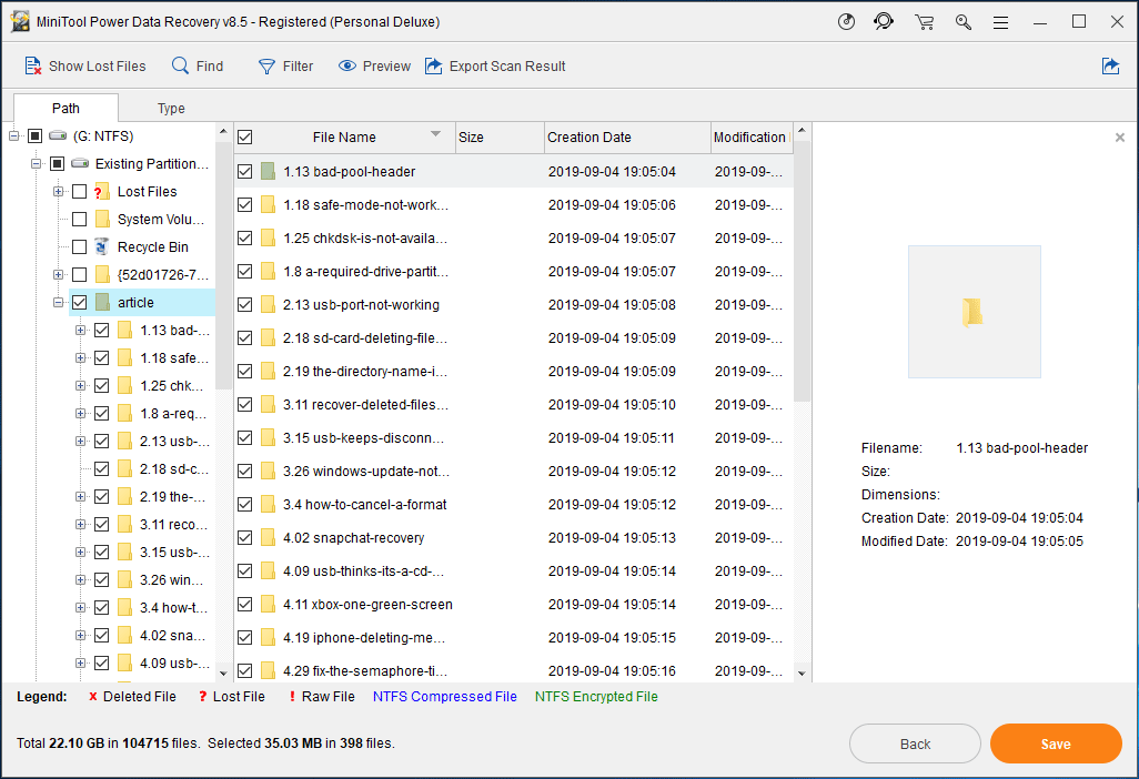 Step 3: After a scan, find your needed files and click the Save button to store data to a safe location. Note that you should not save them to the damaged hard drive.