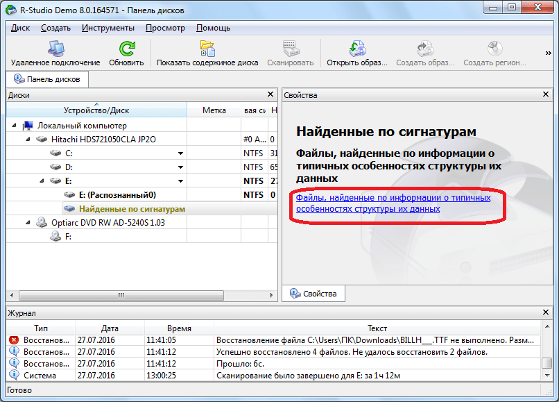 После завершения сканирования, переходим в раздел «Найденные по сигнатурам».
