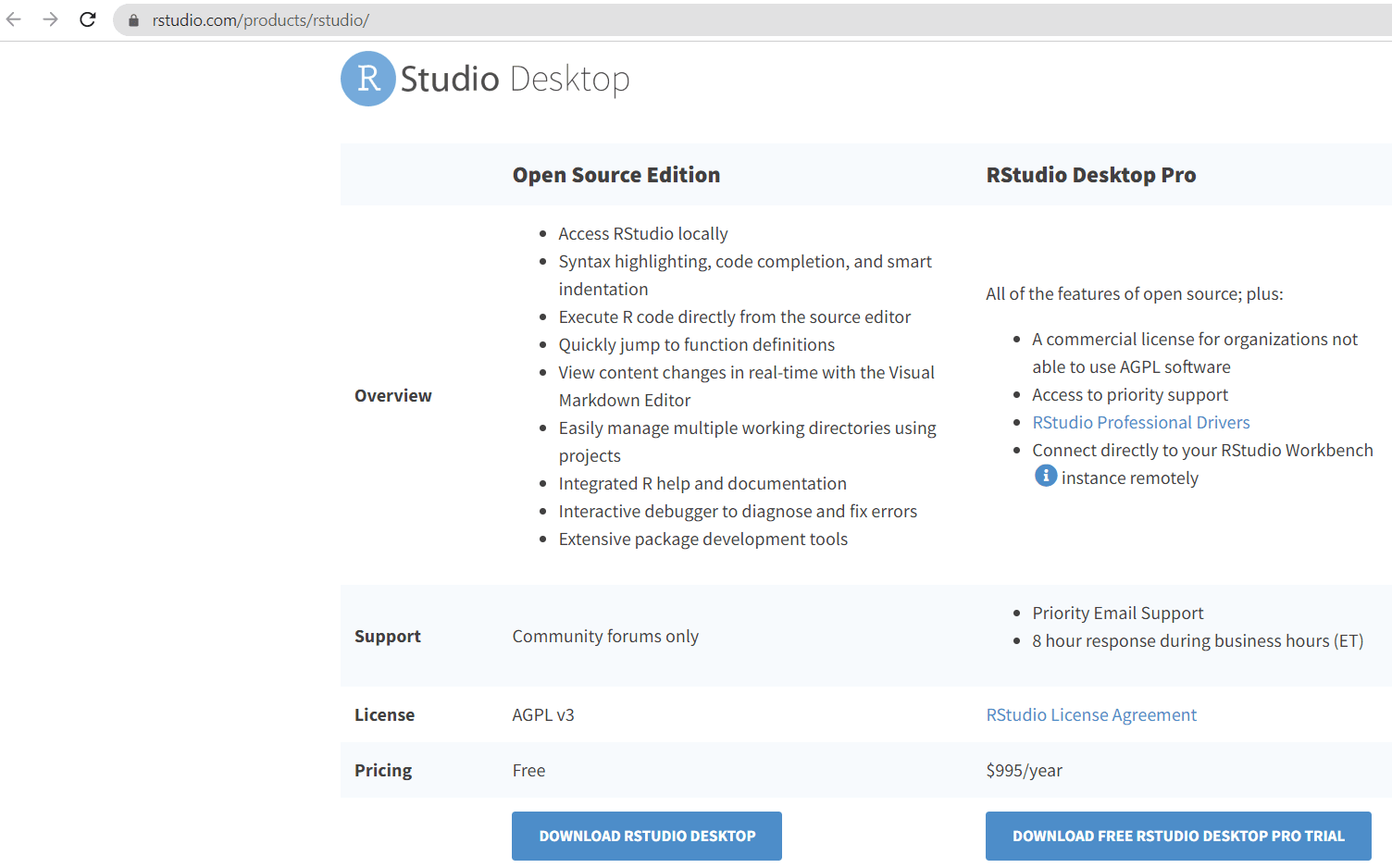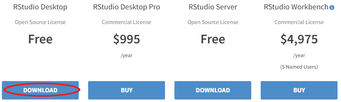 5. You’ll see that your operating system is automatically identified. Press the big button to download the latest release of RStudio for your operating system: