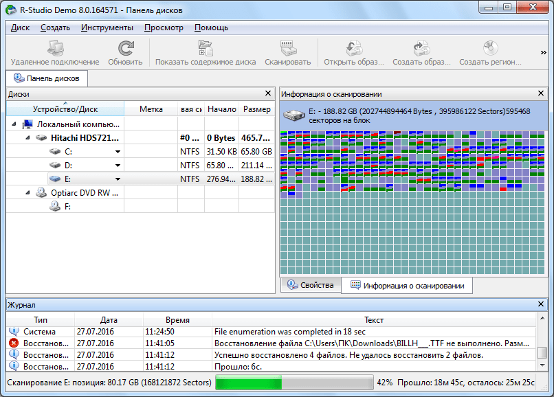 Поэтому, перед форматированием, информацию с него нужно было восстановить на другой носитель. В моём случае, на диск Е. Рассмотрев различные программы для восстановления, мой выбор пал на R-Studio, которая может более тщательно восстанавливать данные не только с флешки, но и с жестких дисков, сохранив при этом, их структуру.