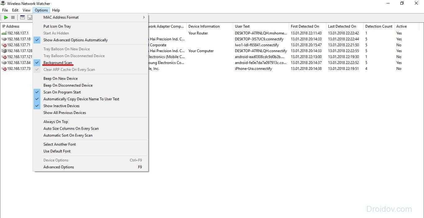 - В выпадающем окне отметьте пункт «Фоновое сканирование».