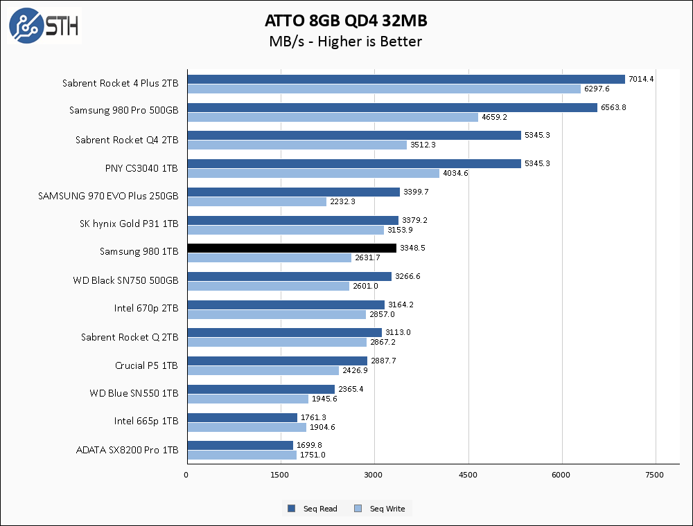 Much like CrystalDiskMark, the larger ATTO test has negligible impact on the 980 1TB’s sequential rates.