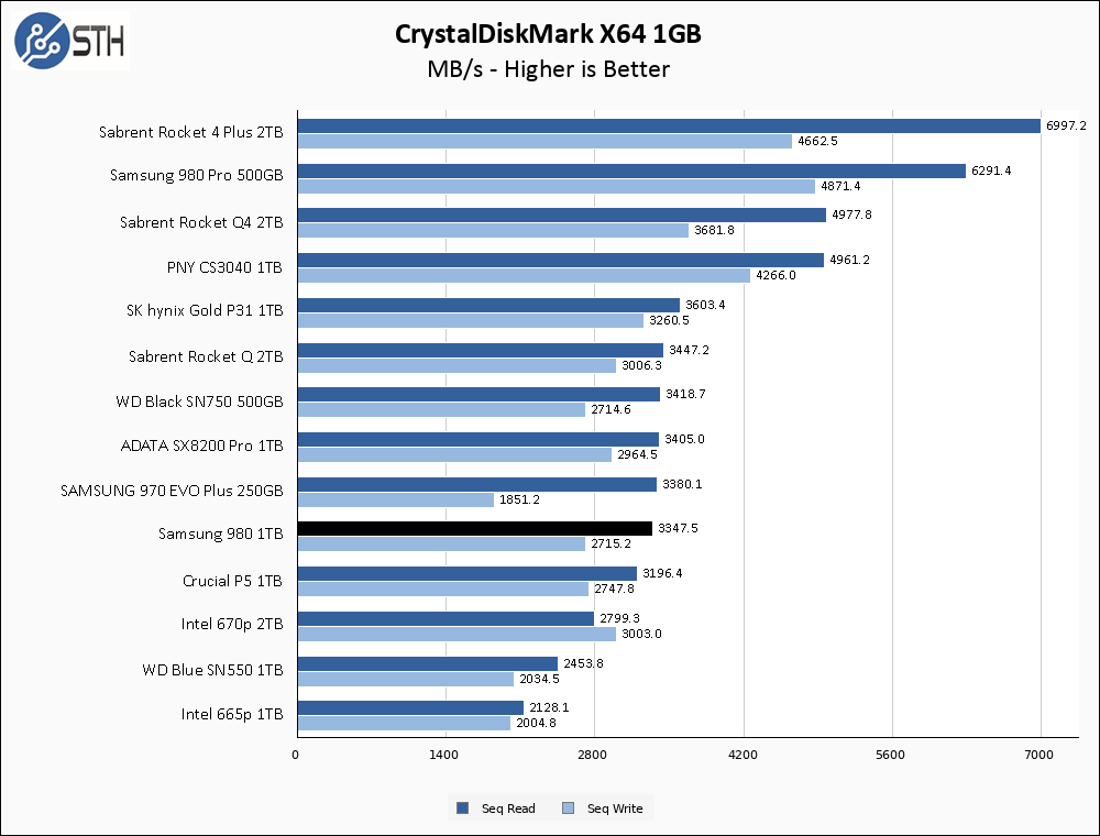 Samsung 980 1TB CrystalDiskMark 1GB Chart