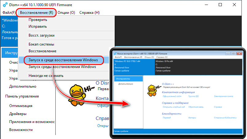 5. Запуск Dism++ в среде WinPE