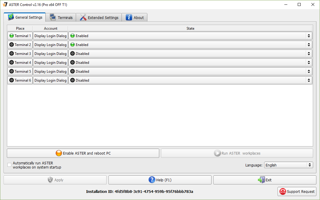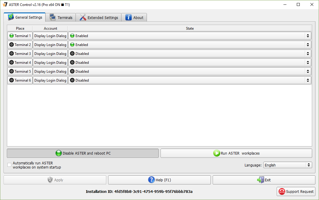 Обратите внимание, что флажок «Автоматически запускать рабочие места АСТЕР при запуске системы» НЕ установлен