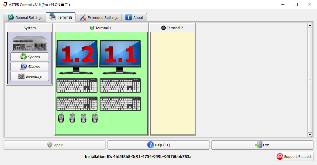 Перетаскиваем монитор 1.2 из терминала 1 в терминал 2, тоже самое делаем с клавиатурой и мышью. Затем нажмимаем кнопку Применить, чтобы сохранить конфигурацию.
