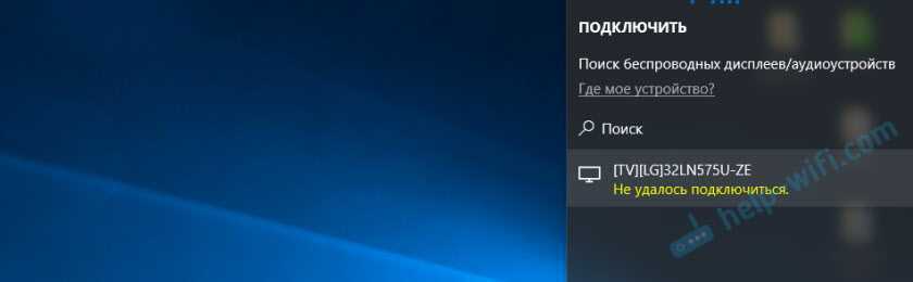 Компьютер находит телевизор, выбираем его, долго идет подключение и появляется ошибка «Не удалось подключиться». Или компьютер не видит телевизор и он не отображается в списке доступных устройств.