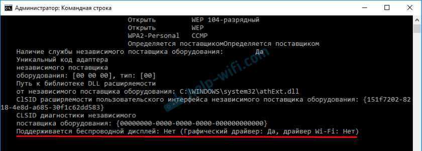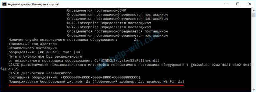 В результатах будет строчка «Поддерживается беспроводной дисплей:» С заводским (старым) Wi-Fi модулем на ноутбуке у меня такой результат: