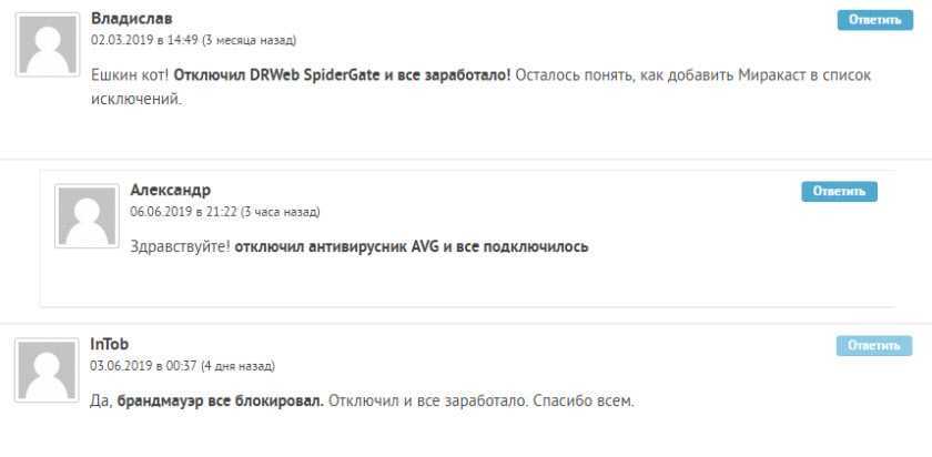 Уже появилось несколько комментариев, что Miracast в Windows 10 начал работать после отключения антивируса или брандмауэра.
