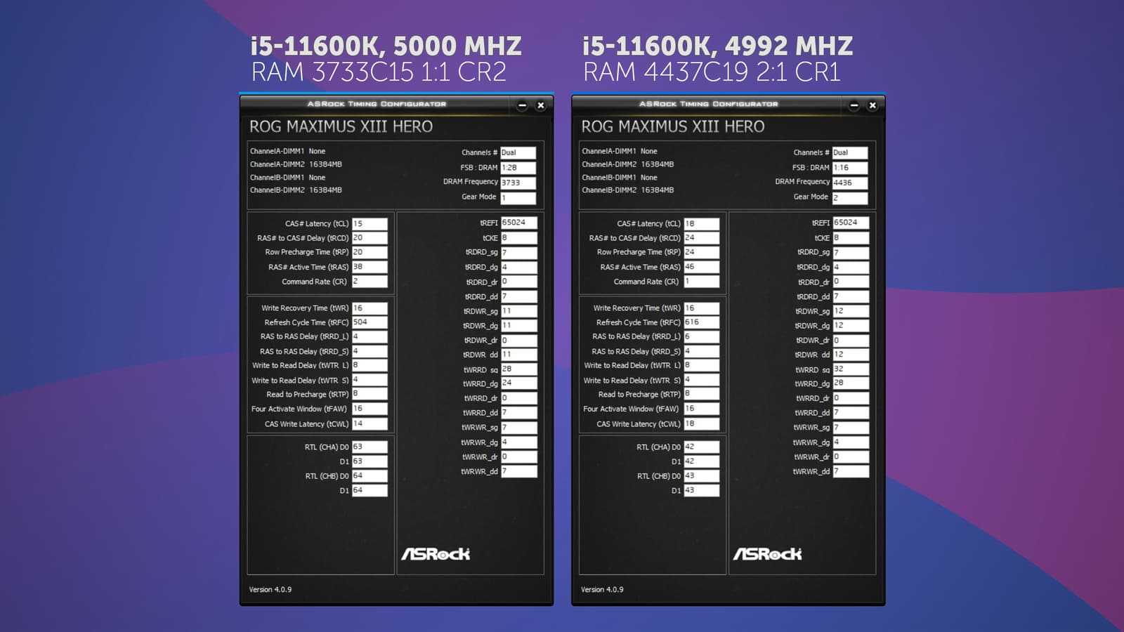 Остались двухранговые модули. Пробежимся по ним быстренько. Ни для кого не секрет, что в среднем они берут меньшую частоту, нежели одноранговые. С другой стороны, покорить на них Command Rate 1 с делителем 1:1 тоже является невероятно сложной задачей. Переходим к практике на примере i5-11600К.