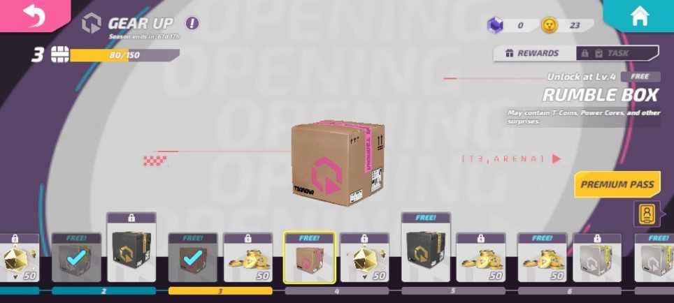 You can get the rumble box by getting it for free in the store daily or you can increase your level in the gear up. To increase your level in gear up, you will need battle points, which can be obtained by participating in battles and completing tasks.