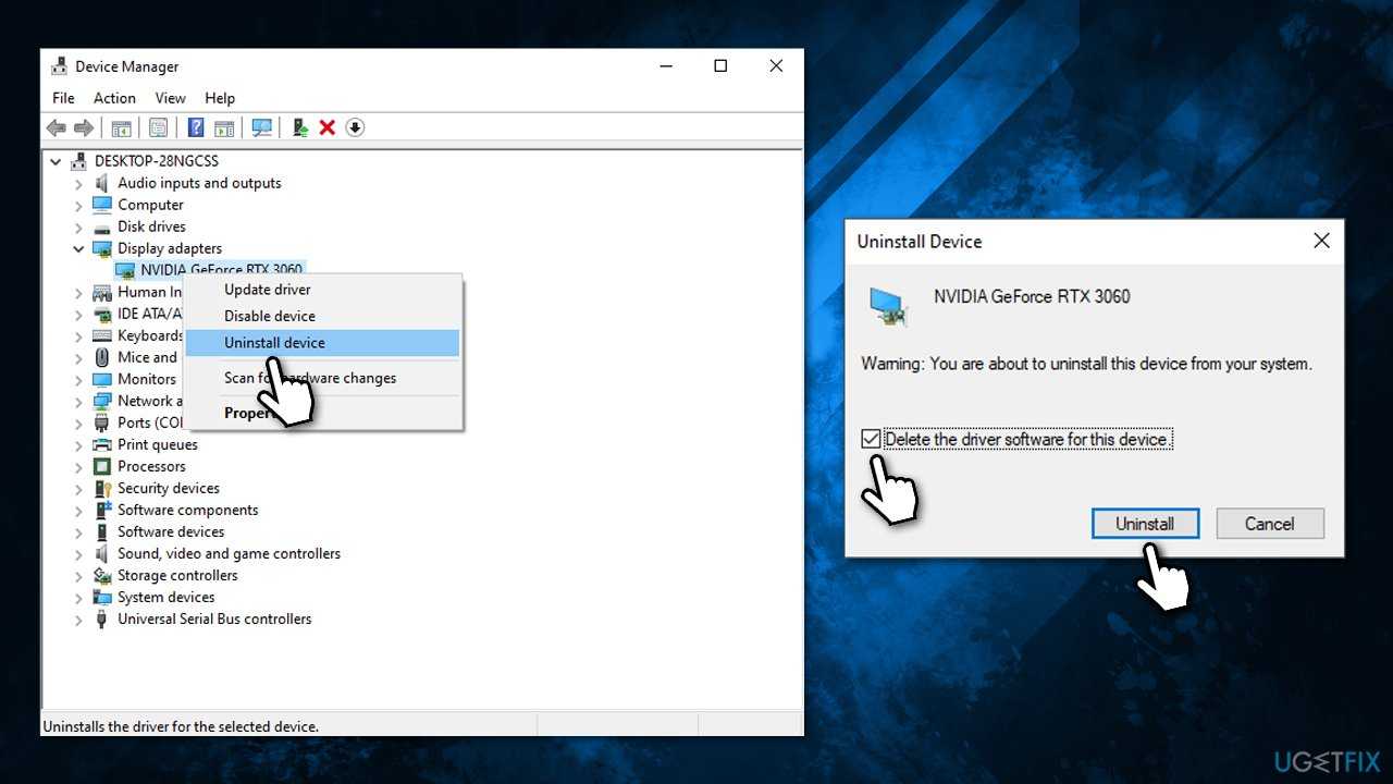 - Right-click on your GPU and select Uninstall device.