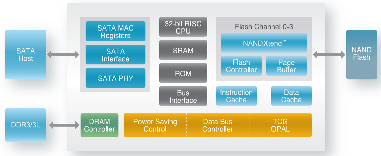 Еще один бюджетный производитель — компания Silicon Motion, выпускающая весь набор для сборки SSD. Контроллеры с поддержкой SATA — SM225х и с поддержкой PCI-E — SM226х, а также SM227х для корпоративной среды. Очень распространённые контроллеры среди всех брендов, занимающихся выпуском SSD.