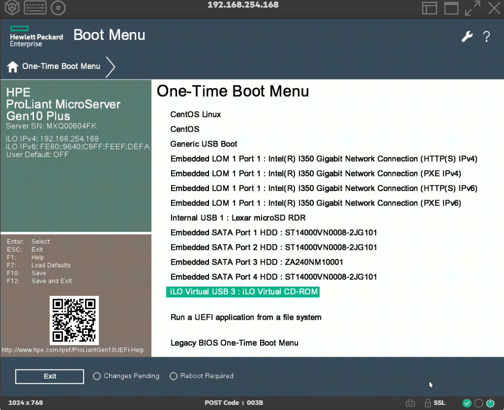 The HPE ProLiant MicroServer Gen10 Plus has built in iLO 5 that allows us to connect Virtual Media from local or remote storage. This is accomplished by logging into the iLO 5 interface – selecting Remote Console & Media and Virtual Media – loading either a local image (ISO from your local machine) or use an image URL – in this case the actual ISO path from the iXsystems server) – **If you are running the installer on your own hardware – Simply download the ISO and use Rufus – https://rufus.ie/– with a USB stick to boot from.**