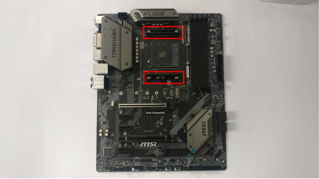 Но кулер, который идет по умолчанию вместе с процессором Ryzen 2600x не имеет механизма защелки, и его нужно будет устанавливать с помощью болтов. Поэтому крепления для защелки с платы нужно отвинтить:
