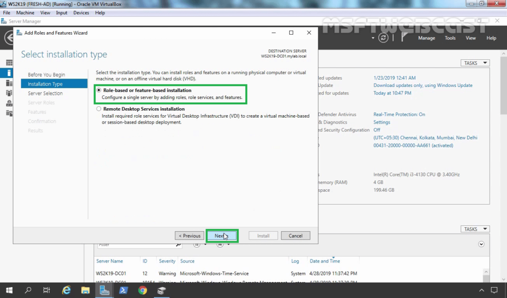 Select Type a custom path and browse for the folder we created earlier and click Next.