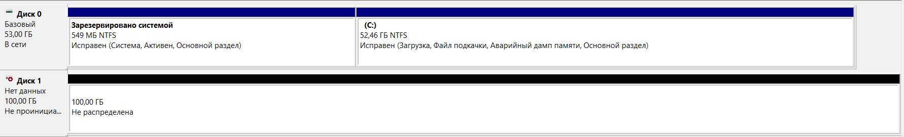 15. Проверьте, что статус диска изменился на «В сети», но на нём отсутствуют разделы и файловая система.