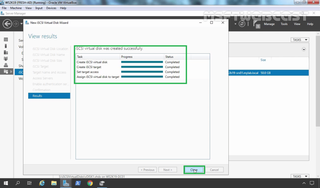 Вы должны увидеть, что цель iSCSI становится доступной: