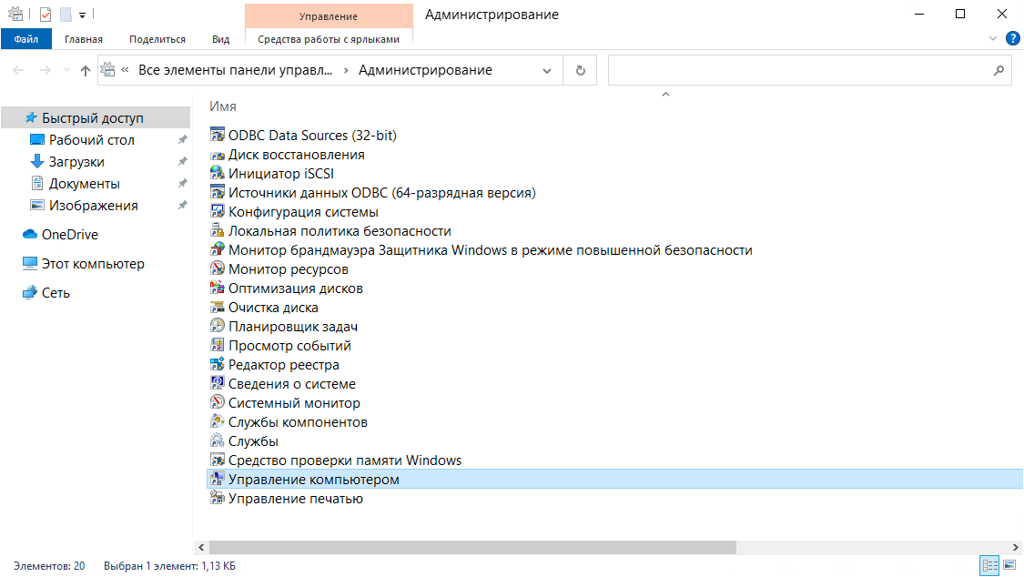 10. В разделе «Администрирование» откройте вкладку «Управление компьютером».