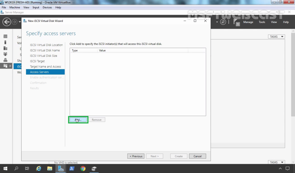 Click Add to specify the iSCSI initiator that will access this iSCSI virtual disk.