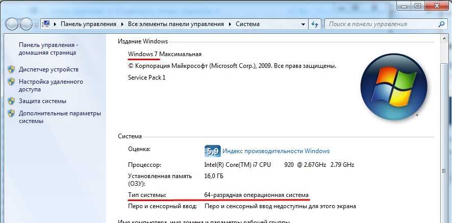 Нас интересует две строчки – это «Издание Windows» и «Тип системы», где указана разрядность (32 или 64). Просто запомните эти параметры, так как они нужны для скачивания нужных дров.
