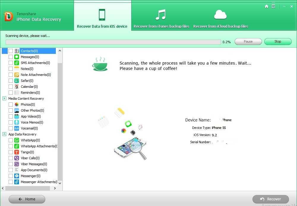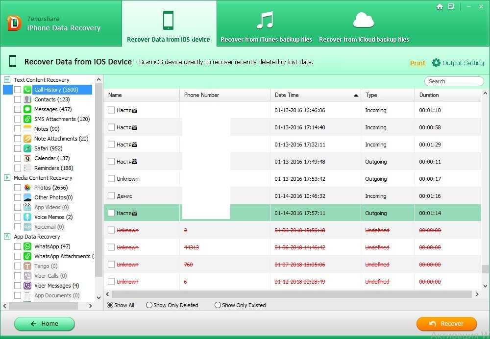 5. В левой части окна отобразятся все данные вашего iPhone, в том числе которые были ранее удалены. Это могут быть фотографии, сообщения, телефонные номера, записи календарей, заметки и многое другое.