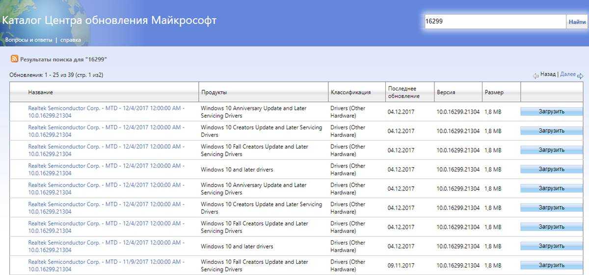 ». Чтобы найти обновления для своего компьютера, надо в поисковой строке портала ввести номер сборки своей ОС (например, 16299). Напомним, что посмотреть его можно, выбрав пункт «Система» при нажатии на меню Пуск ПРАВОЙ кнопкой мыши.