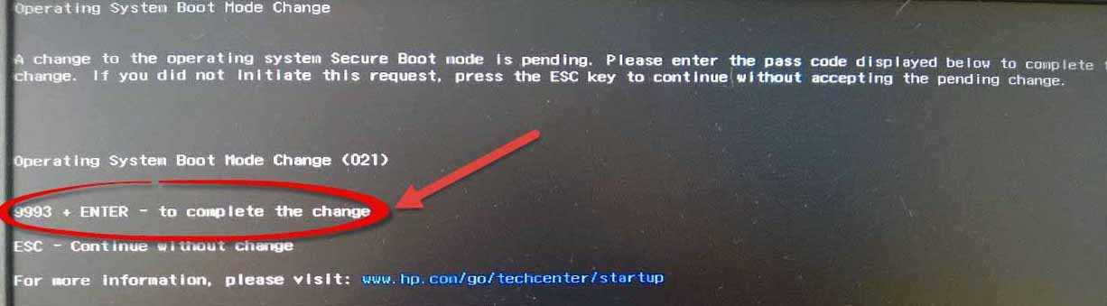 - Вновь подтверждаем изменение способа загрузки вводом предложенных цифр с помощью основной клавиатуры после предупреждения«… Ожидается режим безопасной загрузки …».
