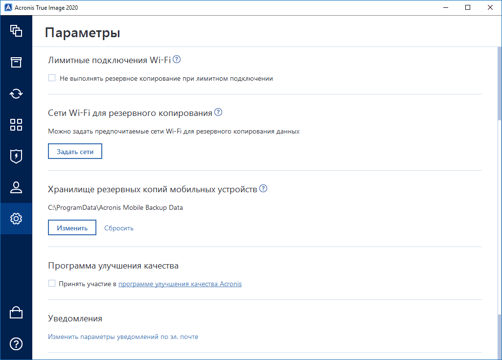 Параметры резервного копирования