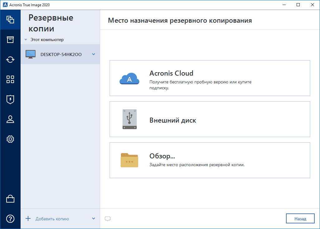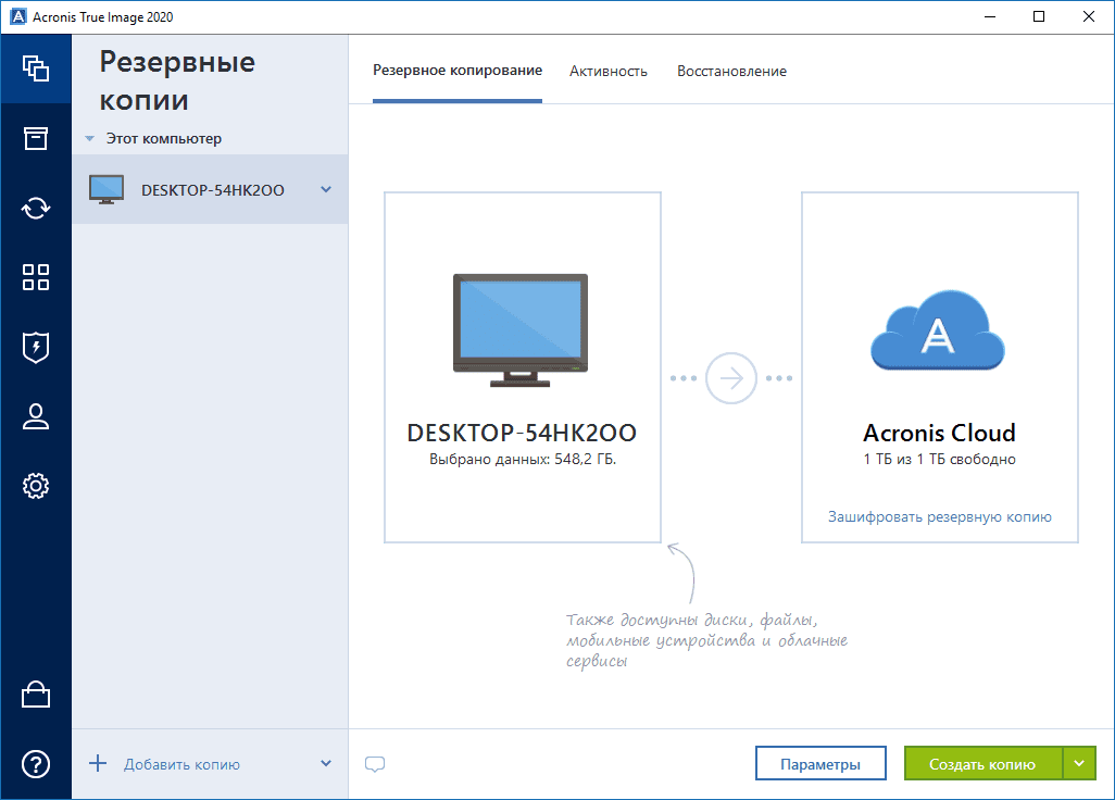Облачное резервное копирование Acronis
