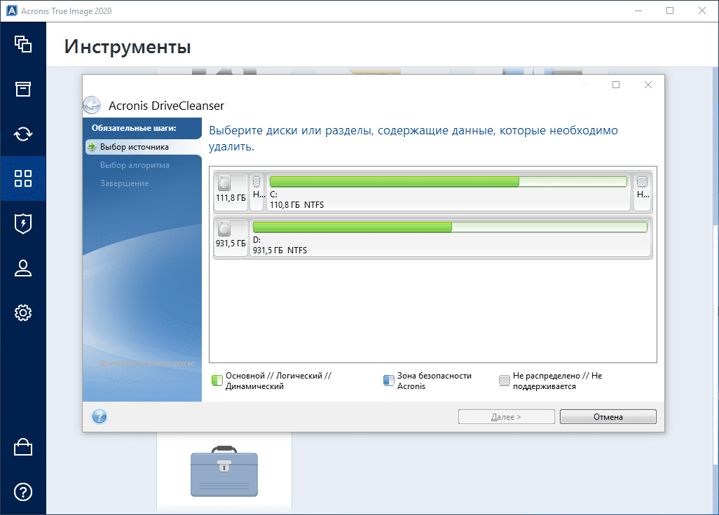 - Затем вы увидите интерфейс Acronis и сможете использовать инструменты как обычно.