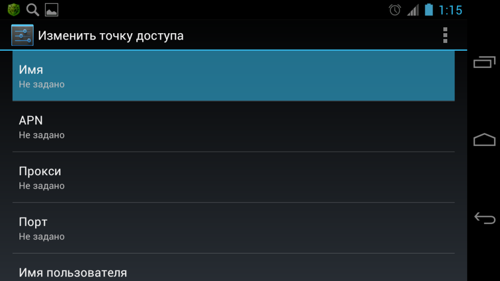 Шаг 5. Ну а так выглядит список параметров, которые нам необходимо будет ввести для новой точки, после чего сохранить ее. Чтобы узнать параметры своего оператора, смотрите ниже.